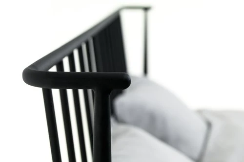 En métal. Vernis. Couchage : 140×200 cm. Exclus : sommier et matelas. l147 x L217 x H100 cm