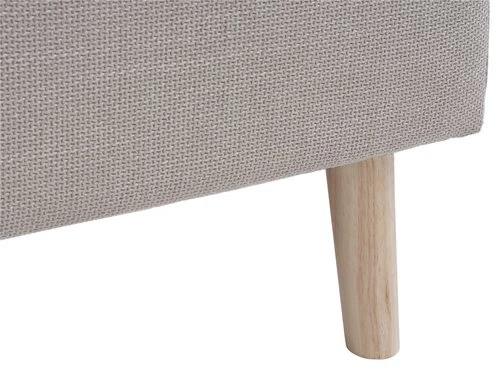 En contreplaquĂ©. Barre centrale : contreplaquĂ©, bouleau massif. Garnissage : mousse polyurĂ©thane. RevĂŞtement : polyester. Pieds : bois de caoutchouc massif. Couchage : 140×200 cm, l154 x L216 x H101 cm