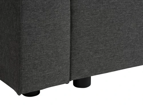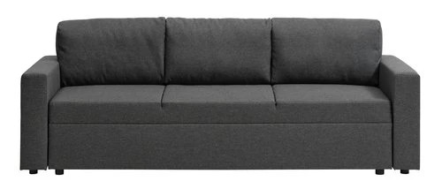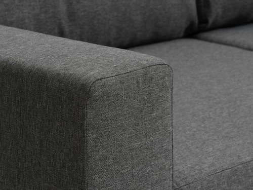 En HDF, contreplaqué, hêtre/pin massif, acier. Garnissage : mousse polyuréthane (25-30 kg/m³). Revêtement : polyester. Pieds : polypropylène. Avec espace de rangement. Couchage : 135×195 cm. 3 places. l225 x H74 x P91 cm.