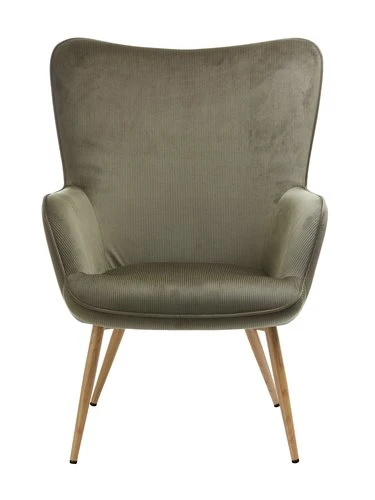 Structure : contreplaqué feuille. Garnissage : mousse polyuréthane (24/28-50 kg/m³). Revêtement : polyester. Piètement : acier. l72 x H98 x P80 cm