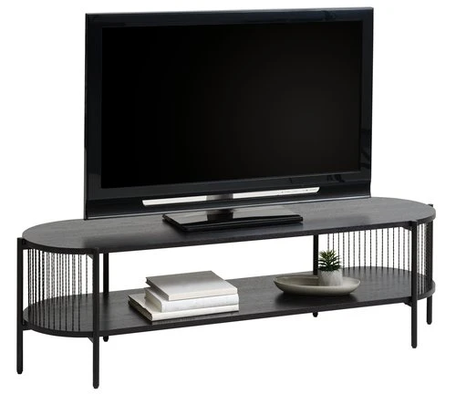 Partie supérieure : MDF4, placage chêne. Côtés : placage papier. Pieds et cadre : métal. l140 x H41 x P40 cm