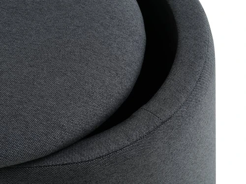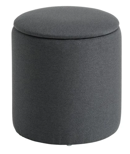 En MDF, revêtement : polyester, garnissage : mousse polyuréthane. Avec espace de rangement. Ø36 x H40 cm