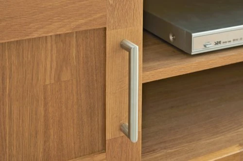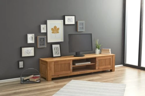 Chêne massif et placage chêne. Portes soft-close. l200 x H45 x P44 cm