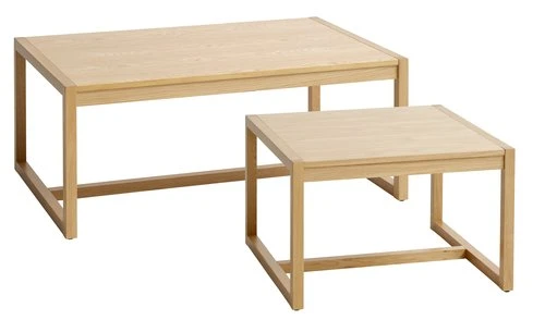 En panneau de particules, placage chêne. Vernis mat. l70 x L110 x H45 cm