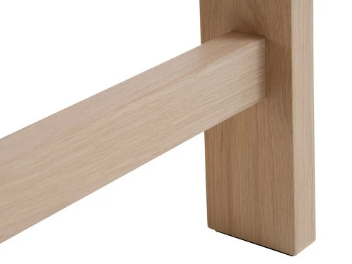 Plateau : MDF, contreplaqué chêne, bouleau massif, chêne massif. Piètement : Bouleau massif, placage chêne. Vernis. l90 x L200 x H75 cm