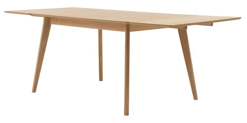 En MDF, contreplaqué, chêne massif, placage chêne. Pieds : placage chêne, chêne massif. Vernis. Incl. 2 rallonges. l90 x L130/220 x H75 cm
