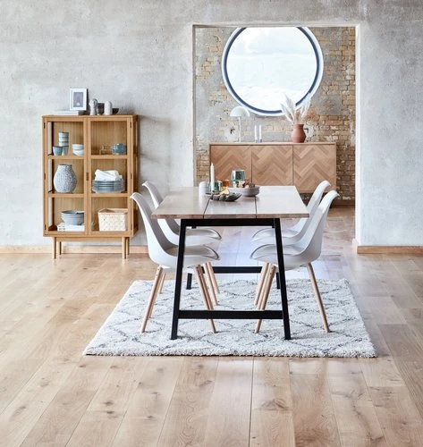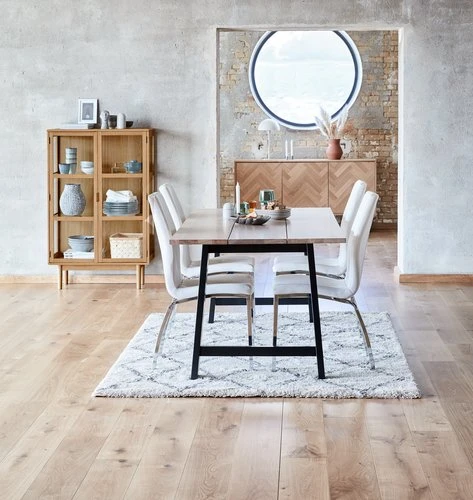 | Matériaux | Face avant: Chêne massif, Verre trempé, Partie supérieure: Placage chêneLe placage de chêne est constitué de fines couches de bois massif collées sur un panneau de particules ou un panneau MDF. Il offre l'aspect authentique du bois naturel massif., Panneau de particules, Sommier: Placage chêneLe placage de chêne est constitué de fines couches de bois massif collées sur un panneau de particules ou un panneau MDF. Il offre l'aspect authentique du bois naturel massif., Panneau de particules, Contreplaqué, Côté: Chêne massif, Verre trempé, Pieds: Chêne massif, Dossier: MDF (panneau de fibres moyenne densité)Les panneaux MDF consistent de fibres de bois coupés très fins, collés sous pression., Placage chêneLe placage de chêne est constitué de fines couches de bois massif collées sur un panneau de particules ou un panneau MDF. Il offre l'aspect authentique du bois naturel massif., Étagère: Verre trempé |
