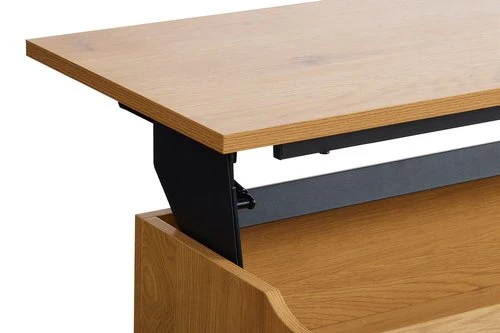 | Caractéristique | Plateau relevableLa fonction de plateau relevable vous permet de soulever le plateau vers vous, afin que vous puissiez vous asseoir dans votre canapé et manger ou utiliser un ordinateur portable sans avoir à vous pencher en avant. Sous le plateau se trouve un compartiment de rangement caché. Le plateau se soulève à l'aide d'un mécanisme de charnière qui s'enclenche pour assurer la solidité de l'ensemble. Il suffit de pousser le plateau vers le bas pour le refermer. |