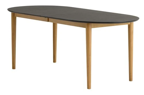 Plateau : MDF, métal, placage chêne, bois de caoutchouc massif. Cadre et piètement : bois de caoutchouc massif. Finition vernie mat, teintée. Incl. 2 rallonges. l90 x L190/270 x H75 cm