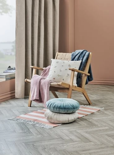 | Méthode de coloration | Tissé teintLorsqu'un tissu est teint, chaque fil est teint avant le tissage. Cela signifie que des motifs tissés apparaissent sur les deux faces du tissu, ce qui rend les couleurs durables. |